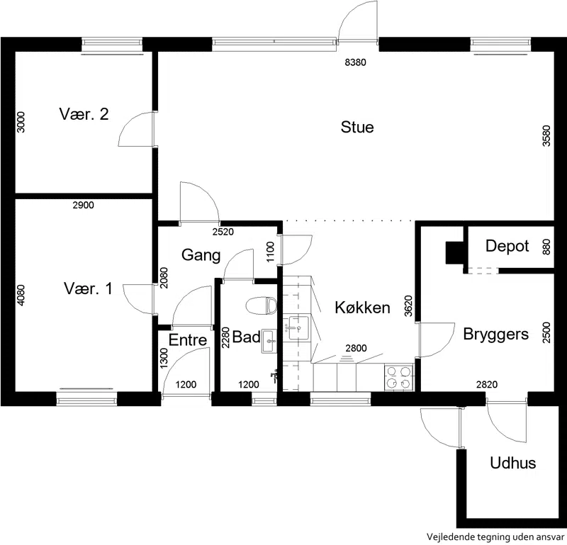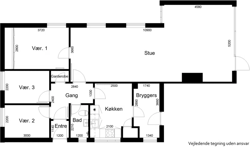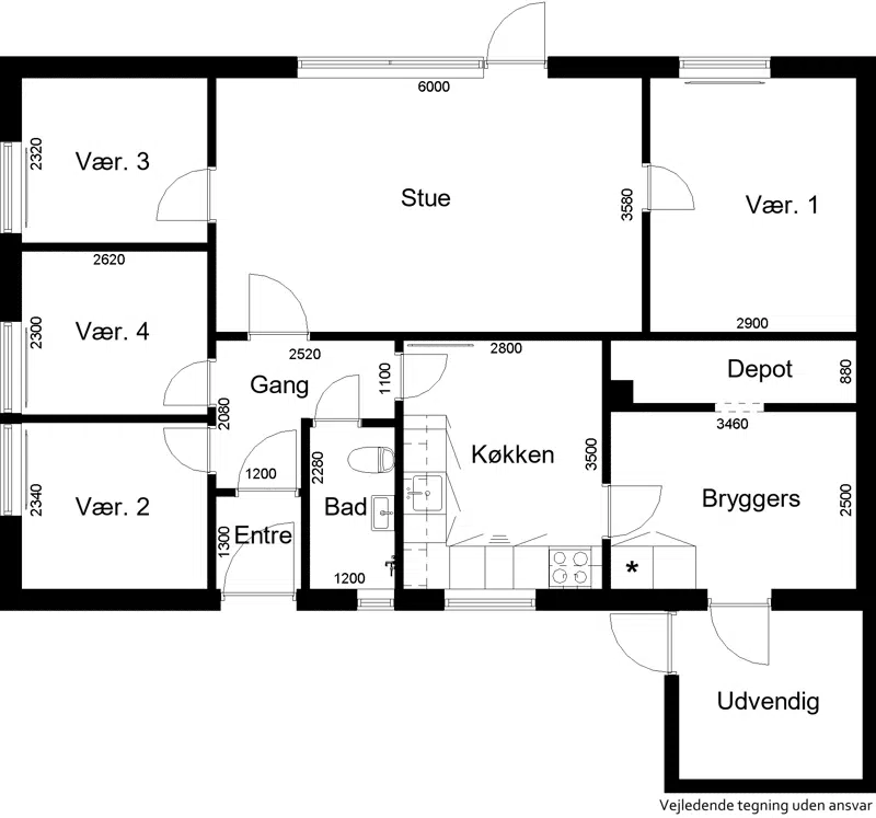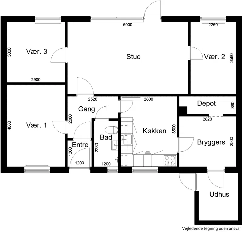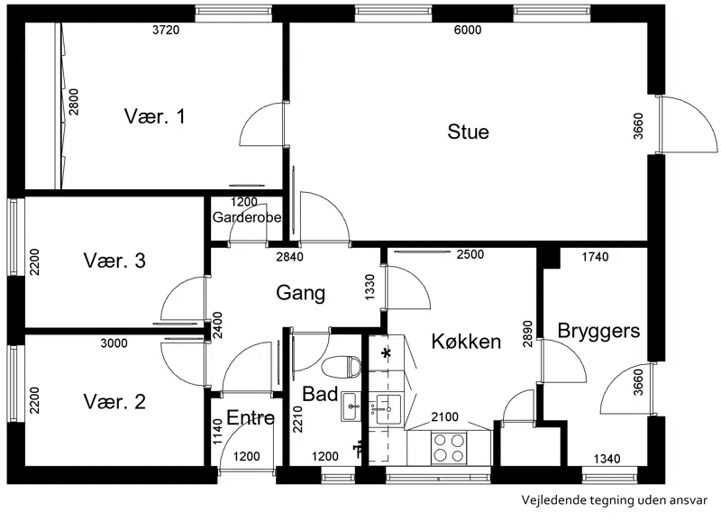 1 plans rækkehuse fordelt på 3-5 værelser.